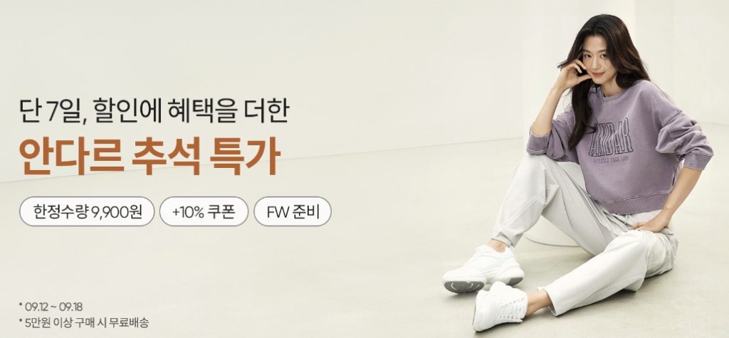由全智賢代言的 Andar 是韓國運動服飾品牌,以售賣高品質簡約時尚瑜珈服而聞名,價格實惠,被譽為平價版 Lululemon。韓國官網除了出名的機能瑜珈運動服飾,包括瑜珈褲、淨色 T-Shirt、慢跑褲,運動背心上衣等,還有泳衣、內衣、休閒服、家居用品及配件售賣。Andar 服飾剪裁專為亞洲女孩設計,各種尺寸選擇,配合不同運動和日常穿著需求。
