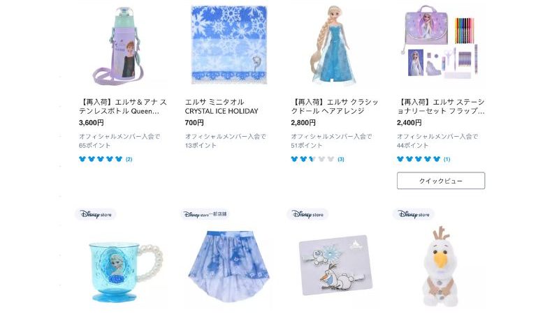 日本 Disney Store 有售 Elsa 和 Anna 一系列可愛玩偶、文具、服裝、配飾、日用品等商品。