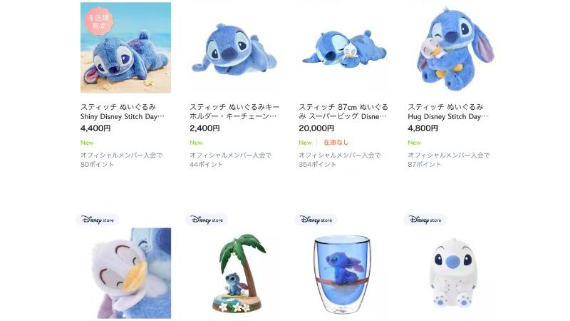 日本 Disney Store 有售史迪仔一系列可愛公仔、鎖匙扣、LED 燈、水瓶、日用品等商品。