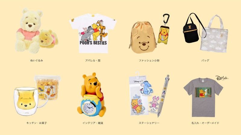 日本 Disney Store 有售小熊維尼一系列可愛公仔、玩具、衣服、時鐘、配件和家居用品等等。