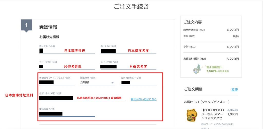 填寫寄送資料。要打開Buy&Ship官網的「海外倉庫地址」並選擇「日本」,以查看 Buy&Ship 日本倉庫的資料。
