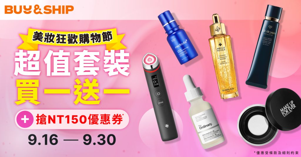Buy&Ship 2024 美妝狂歡購物節盛大開跑!從 9 月 16 日至 9 月 30 日,為你精選日、韓、台、美等地 30+ 組超人氣專櫃美妝優惠套裝,例如 Clé de Peau、Kiehl’s、Shiseido、GUERLAIN、Medicube 等護膚、彩妝,快約朋友們一起來購物狂歡吧~