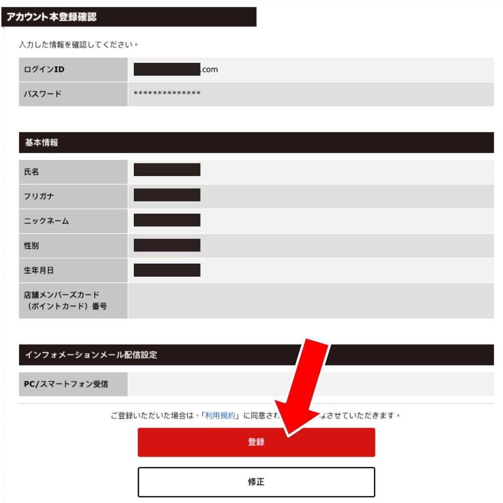 檢查輸入的帳戶信息是否正確,包括基本資料與郵件偏好設置。如正確無誤,點擊登録 按鈕完成註冊。