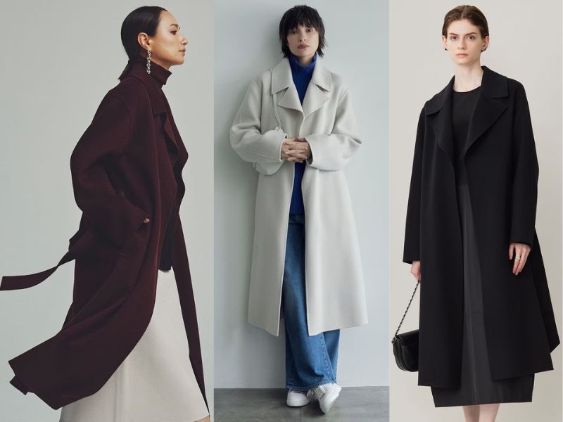 大衣採用雙面織法,以高級羊毛混紡材質打造,外層使用90%羊毛及10%喀什米爾,內襯為吸濕透氣的柔軟銅氨纖維,隨附腰帶。