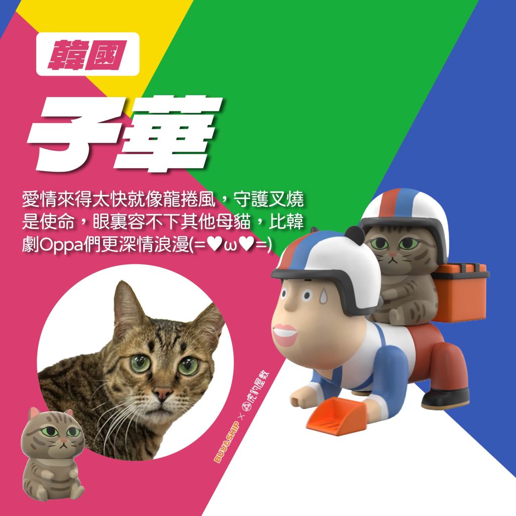 台灣的虎豹屋敷一直以「有著尊貴的貓及卑微貓奴們的好地方」為理念,積極開發 「Ultra Tiger Toys虎豹屋敷」療癒商品系列為大家帶來更多歡笑。這一次就和 Buy&Ship 跨界聯名推出了「國際鏟屎機の貓奴玩具盲盒」,各位愛貓人士記得把握機會把 Buy&Ship 七隻貓主子帶回家喔~