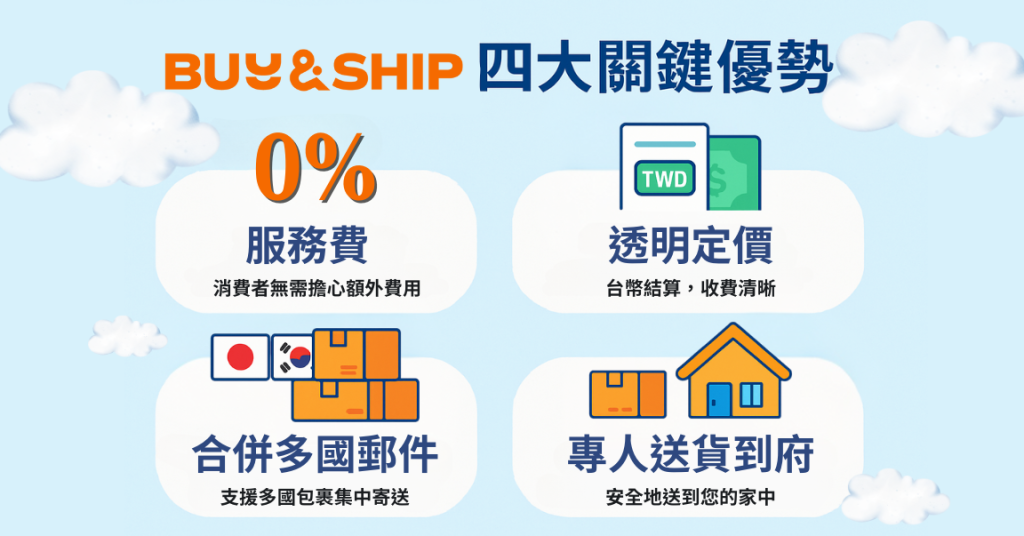| Buy&Ship | 0% + 國際運費 | ✅ | ✅ 高 | 日/韓/美/英/加/港/中 | 台幣結算、無匯差 |