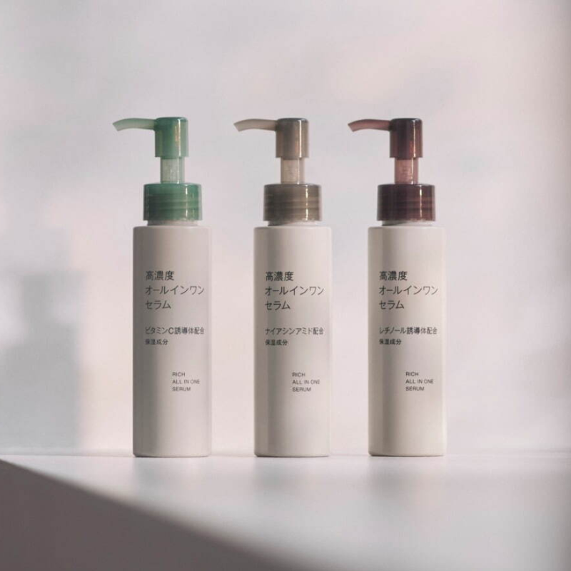三款配方分別添加高濃度維他命C衍生物、菸鹼醯胺 (niacinamide)及視黃醇 (retinol) 衍生物,針對毛孔粗大、暗沉、乾燥等不同肌膚問題,另有精華液可搭配使用。