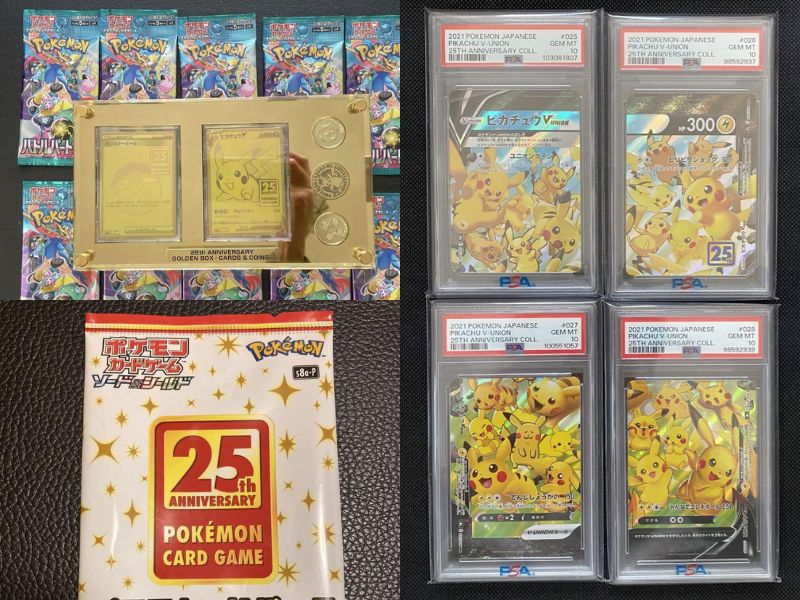 為寶可夢卡誕生 25 週年所推出的紀念套卡,重印經典角色(如噴火龍、妙蛙花、水箭龜等),帶有金色圖章,收藏價值穩定且容易入手。