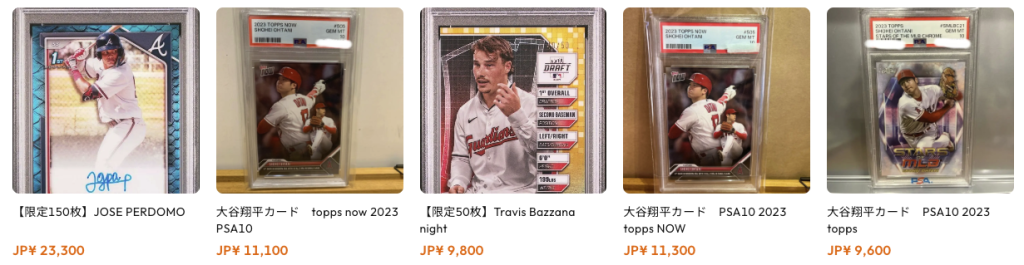 在 Mercari,從早期 Rookie RC 卡、Topps 系列 PSA 鑑定卡、限量印刷如「50/50、Topps Now、Chrome」等皆能入手,其中大谷翔平的 MLB 球員卡最為火熱,還有其他球員親筆簽名等極具收藏價值的職業運動球星卡牌,運動卡迷快來尋寶吧!