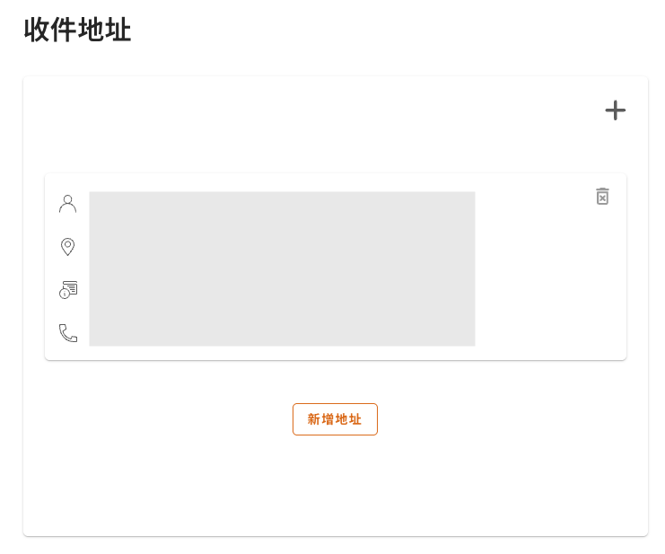 在「收件地址」頁面新增收件人資訊(家人/朋友),包括他們的姓名、聯絡電話及台灣收件地址,作為最終配送地點。