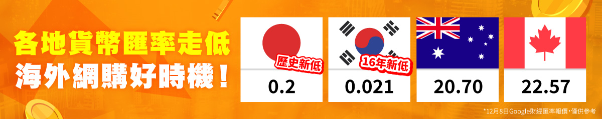 近期多國貨幣對新臺幣匯率持續走弱,正是把握年末優惠、海外網購的絕佳時機!不論是日韓潮牌的感謝特賣,還是歐美與澳洲電商的限時折扣,低匯率搭配年末促銷,讓你更輕鬆、更划算地入手心儀商品!本文將帶你掌握各地最值得購入的年末優惠與匯率重點,讓你在假日季省錢又買得開心,並透過 Buy&Ship 海外集運服務快速安全地運回台灣!